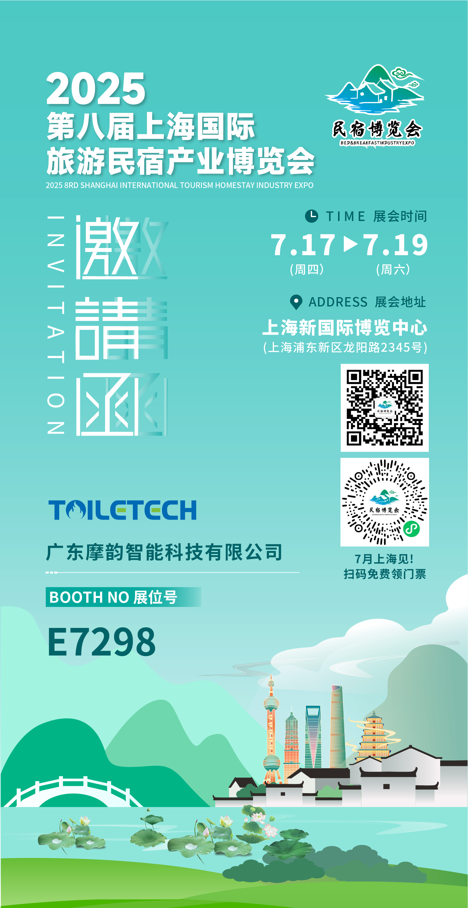 2025 上海国际民宿产业博览会(7月17-19日)即将启幕,TOILETECH诚邀您莅临 E7298展位,体验全球首创的 无水智能卫生解决方案,彻底解决民宿排污难、异味大、维护成本高的行业痛点!